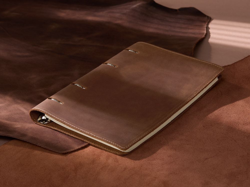 Ежедневник с блоком на кольцах, выполнен из натуральной кожи.