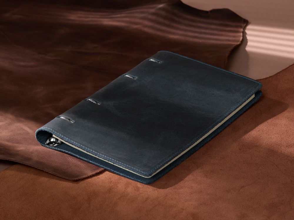 Ежедневник с блоком на кольцах, выполнен из натуральной кожи.