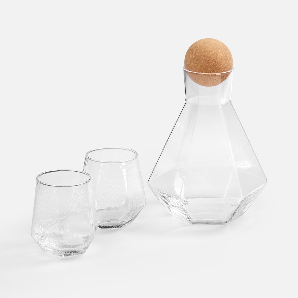 Графин из боросиликатного стекла отличается высокой термостойкостью и долговечностью, гарантируя надежность при ежедневном использовании. Стаканы, выполненные из закаленного стекла, сочетают в себе прочность и изящество, сохраняя прозрачность и устойчивость к ударам. В комплекте также предусмотрена крышка в виде шара из натуральной пробки, которая гармонично дополняет общий дизайн и обеспечивает защиту напитка от пыли и выветривания.
